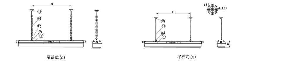 BYS防爆防腐全塑熒光燈外形及安裝舉例