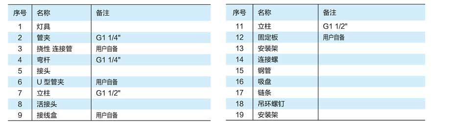 ○ 配裝(zhuāng)光源及功率: